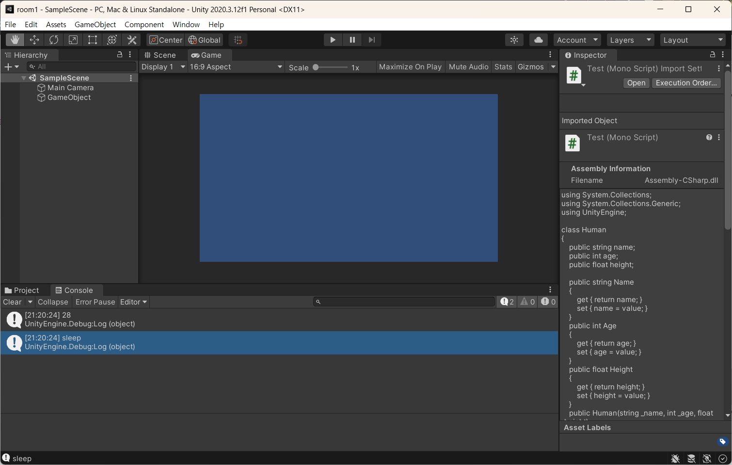 Debug.Log("sleep");