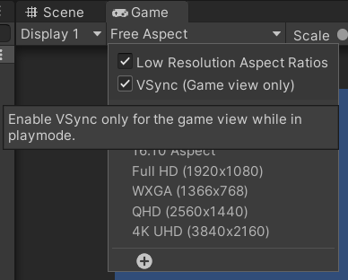 참고로 성능이나 병목현상을 측정할 땐 VSync를 꺼주는 것이 좋다.