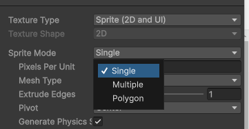 그리고 Sprite Mode 를 Single로 바꿔준다.