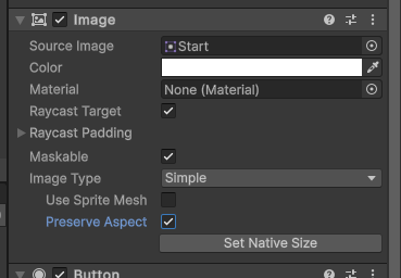 그럼 이미지가 버튼 크기 그대로 삽입되는데, 이미지 형태 그대로 사용하려면 Preserve Aspect 에 체크해주면 된다.