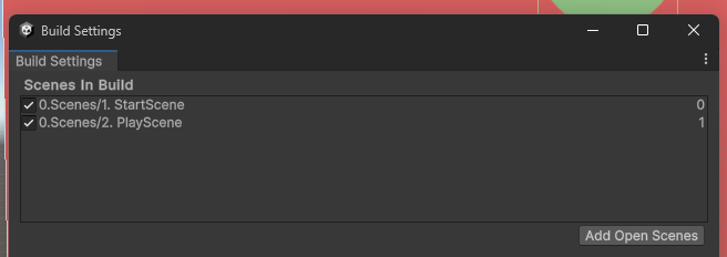 2. A씬과 B씬을 준비하여 저장한 뒤 File - Building Setting 에서 Scenes In Build에 추가해둔다.