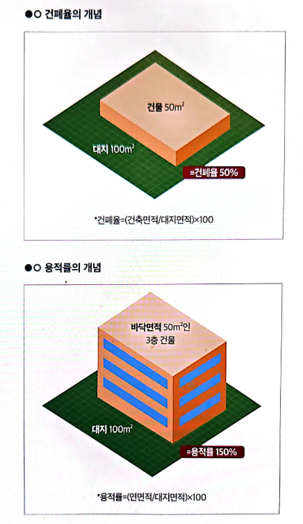 건폐율과 용적률은 지방자치단체의 조례로 정하고 있는데 이는 각 지방자치단체별로 그 기준이 다를 수 있으니 잘 알아봐야 한다.