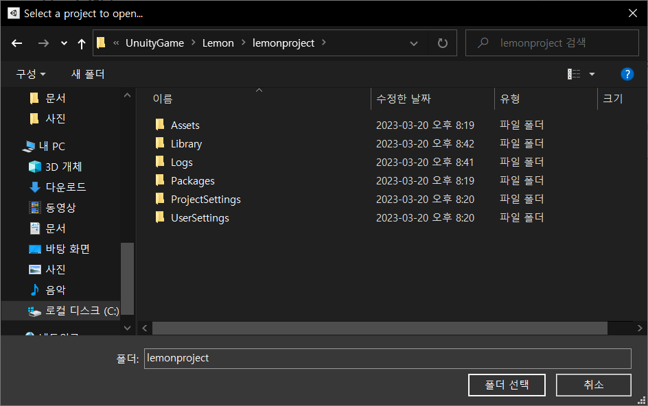 추가할 때는 이 프로젝트가 있는 폴더를 선택해주면 된다.